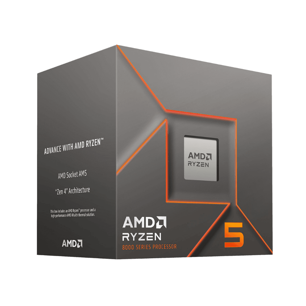AMD Ryzen 5 8400F: Rendimiento: 6 núcleos y 12 hilos. Arquitectura "Zen 4" con frecuencia base de 4.2 GHz y Turbo hasta 4.7 GHz. Gráficos: Requiere tarjeta de video dedicada (serie 'F'), ya que no incluye gráficos integrados. Inteligencia Artificial: A diferencia de otros modelos de la serie 8000, no incluye NPU Ryzen AI. Consumo (TDP): Muy eficiente con un TDP de 65W. Incluye el disipador AMD Wraith Stealth. Compatibilidad: Socket AM5. Soporta exclusivamente memorias DDR5.