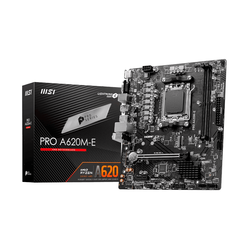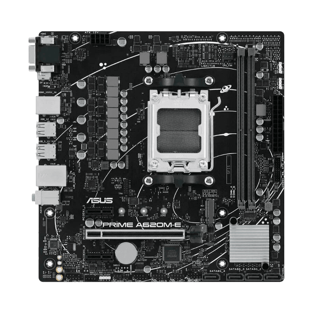 ASUS PRO A620M‑E Placa madre confiable y eficiente, ideal para builds económicas y de uso diario con procesadores AMD Ryzen de nueva generación. Destacados: Soporte para procesadores AMD Ryzen™ serie 7000 y 8000 (socket AM5) Compatible con memoria DDR5 de alto rendimiento PCIe 4.0 x16 para tarjeta gráfica y ranura M.2 para almacenamiento rápido LAN 1G para conexión estable Formato Micro ATX, compacto y funcional para setups sencillos y productivos