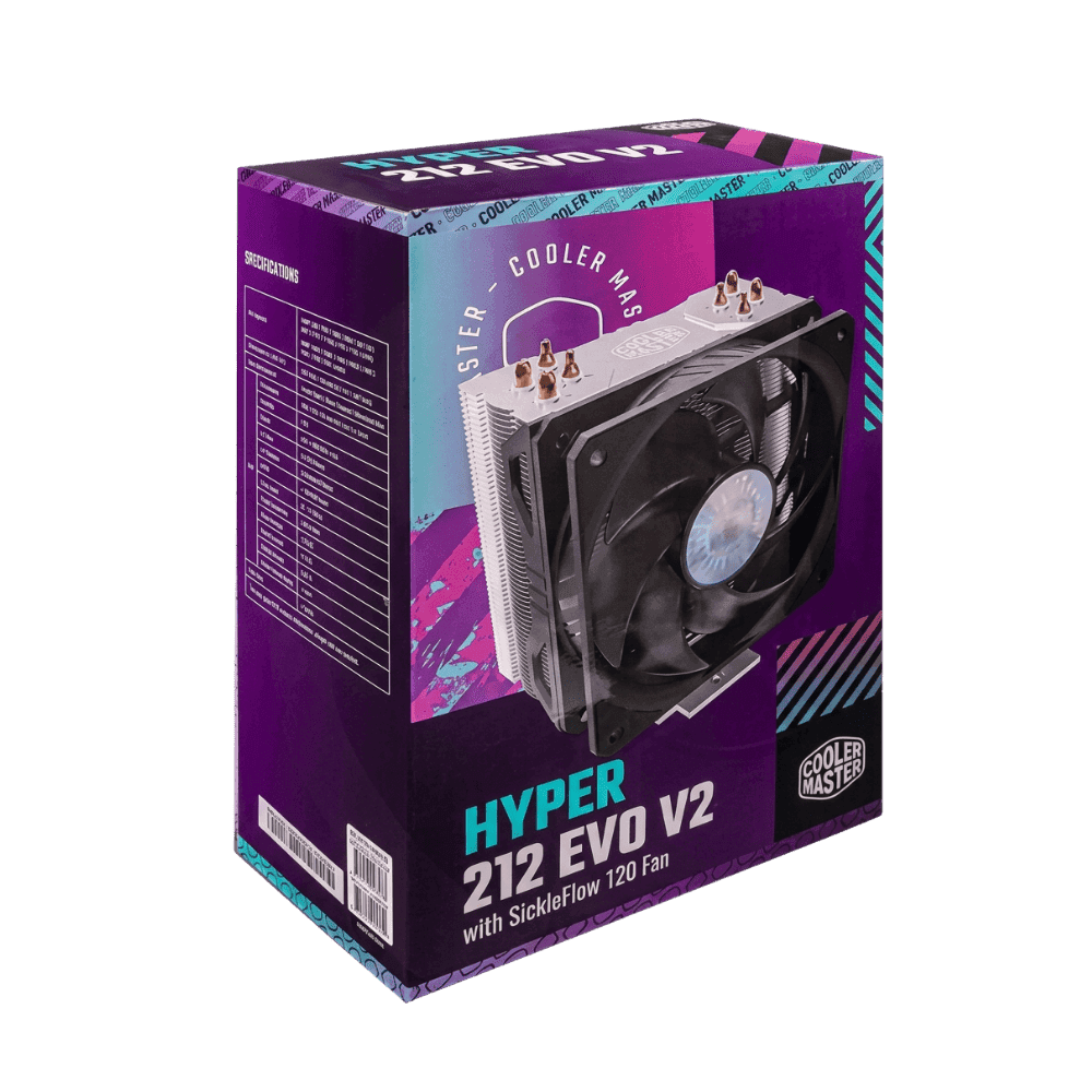 COOLER MASTER HYPER 212 EVO V2 Rendimiento (TDP): Torre de disipación optimizada con un TDP de 180W, equipada con 4 heatpipes de cobre con tecnología Direct Contact.Ventilación: Incluye un ventilador SickleFlow 120mm PWM de alto rendimiento, optimizado para flujo de aire y presión estática, con funcionamiento silencioso.Compatibilidad y Diseño: Soporte para sockets Intel LGA 1700 / 1200 / 115X / 2066 y AMD AM5 / AM4. Diseño de heatpipes asimétrico para asegurar 100% compatibilidad con memorias RAM altas.
