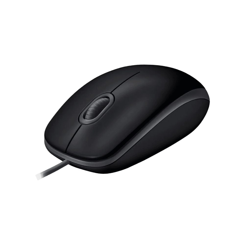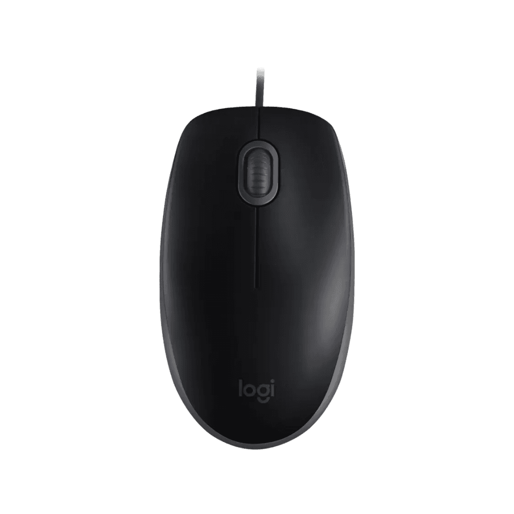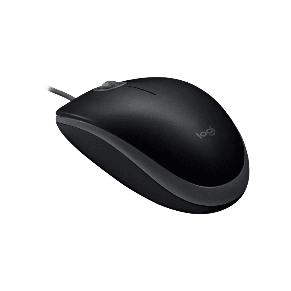 Mouse Logitech M110 Silent, sensor óptico preciso y conexión USB. Cuenta con 3 botones (click izquierdo/derecho, click de botón central), dimensiones de 112.9 × 61.7 × 38.4 mm.