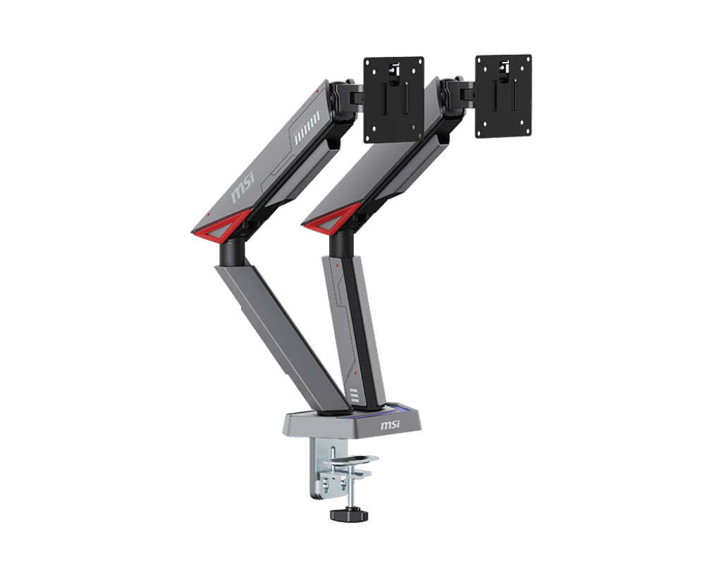Diseño resistente: experimente durabilidad y fiabilidad con el brazo de soporte para monitor único msi MPG MT161DR Premium, compatible con tamaños de pantalla de 17 a 38 pulgadas y una capacidad de peso de 2 a 35.3 lbs (4.4 a 35.2 libras) por pantalla Iluminación RGB vibrante: añade un toque dinámico a tu espacio de trabajo con iluminación RGB, mejorando tanto la estética como la funcionalidad Opciones de base versátiles: Elija entre las opciones de base de abrazadera y ojal para una fácil instalación en escritorios con espesores que van desde 10 a 3.150 in (abrazadera) o 10 a 1.575 in (ojal), asegurando la compatibilidad con varias configuraciones Compatibilidad: Diseñado con compatibilidad VESA (75x75, 3.937x3.937 in) para acomodar una amplia gama de monitores, asegurando un ajuste perfecto para su configuración Placa VESA de liberación rápida: disfrute de un montaje y desmontaje sin complicaciones con la placa VESA de liberación rápida, lo que permite ajustes sin problemas a sus ángulos de visión preferidos