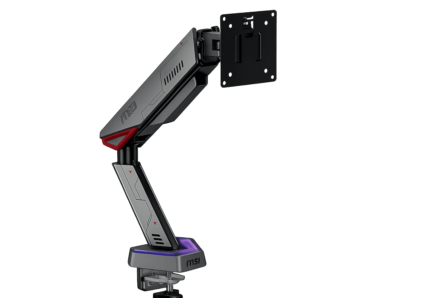 Diseño de alta resistencia: Experimente durabilidad y confiabilidad con el brazo de soporte de monitor único MSI MPG MT161R, compatible con tamaños de pantalla de 17 a 45 pulgadas y una capacidad de peso de 2 a 16 kg (4.4 a 35.2 lbs) por pantalla Iluminación RGB vibrante: añade un toque dinámico a tu espacio de trabajo con iluminación RGB, mejorando tanto la estética como la funcionalidad Opciones de base versátiles: Elija entre opciones de base con abrazadera o con ojal para una fácil instalación en escritorios con espesores que van desde 10 a 80 mm (abrazadera) o 10 a 40 mm (ojal), asegurando compatibilidad con varias configuraciones Compatibilidad: Diseñado con compatibilidad VESA (75 x 75, 100 x 100 mm) para acomodar una amplia gama de monitores, asegurando un ajuste perfecto para tu configuración Placa VESA de liberación rápida: Disfruta de un montaje y desmontaje sin complicaciones con la placa VESA de liberación rápida, permitiendo ajustes sin problemas a tus ángulos de visión preferidos