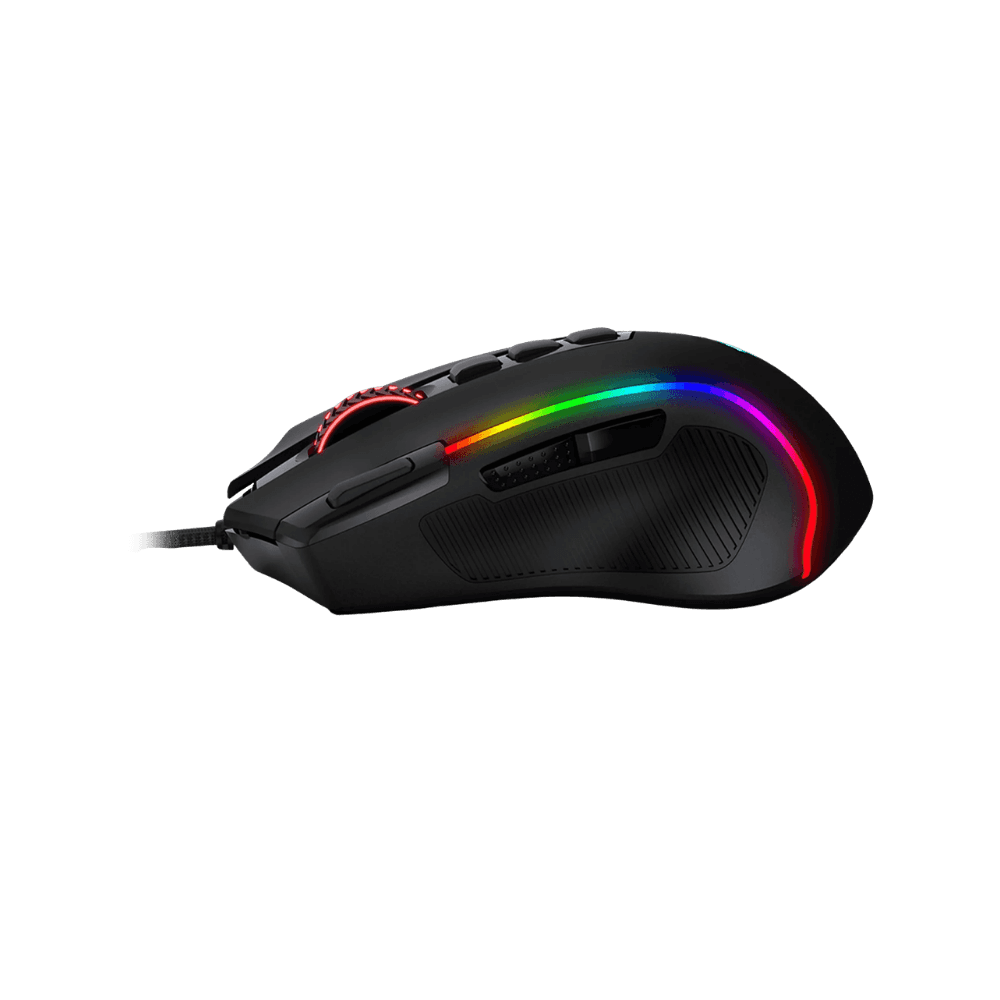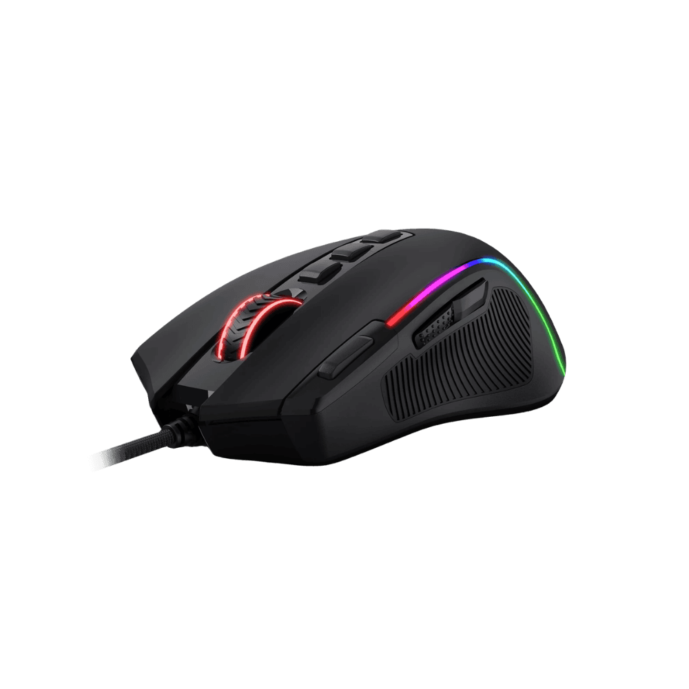 Mouse con sensor óptico de hasta 8000 DPI, polling rate ajustable y 11 botones programables, ideal para juegos y productividad. Cuenta con iluminación RGB, conexión USB con cable mallado de 1.8 m y diseño ergonómico para mayor comodidad en largas sesiones.