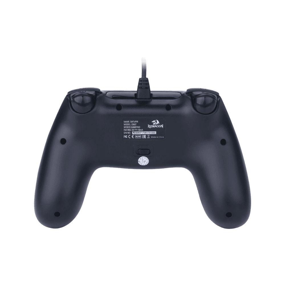 Redragon Saturn G807: Conectividad: Alámbrica mediante cable USB de 1.5 metros, garantizando una conexión plug-and-play sin retrasos (input lag) y sin necesidad de baterías. Compatibilidad: Nativa con PC (Windows), PS3 y dispositivos Android (mediante adaptador OTG). Soporta los modos X-Input y D-Input. Inmersión: Equipado con dos motores de vibración internos que proporcionan una respuesta táctil realista en juegos compatibles. Controles: Cuenta con sticks analógicos de alta precisión y un D-pad (cruceta) sensible para un control fluido en cualquier género. Diseño: Ergonomía clásica basada en el mando de Xbox, con agarres texturizados laterales que mejoran la sujeción durante sesiones prolongadas. Construcción: Fabricado en plástico ABS de alta calidad, diseñado para ser ligero pero resistente al uso diario.