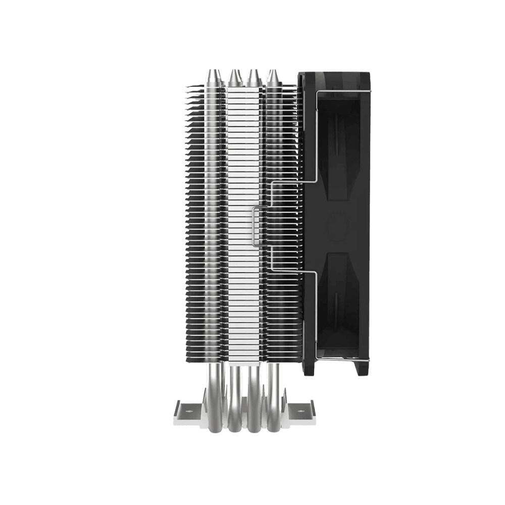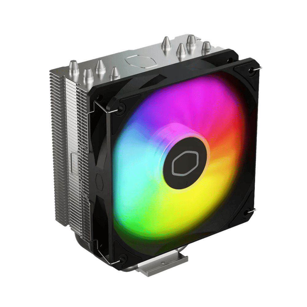 Cooler Master Hyper 212 Spectrum V3: Rendimiento: Torre de disipación compacta con un TDP estimado de 200W, equipada con 4 heatpipes de cobre con tecnología Direct Contact para una transferencia de calor eficiente. Ventilación: Incluye un ventilador Spectrum ARGB de 120mm PWM, optimizado para alto flujo de aire y presión estática, con detección automática de iluminación. Compatibilidad: Soporte para sockets Intel LGA 1700 / 1200 / 115X y AMD AM5 / AM4. Altura compacta de 152 mm para mayor compatibilidad con chasis